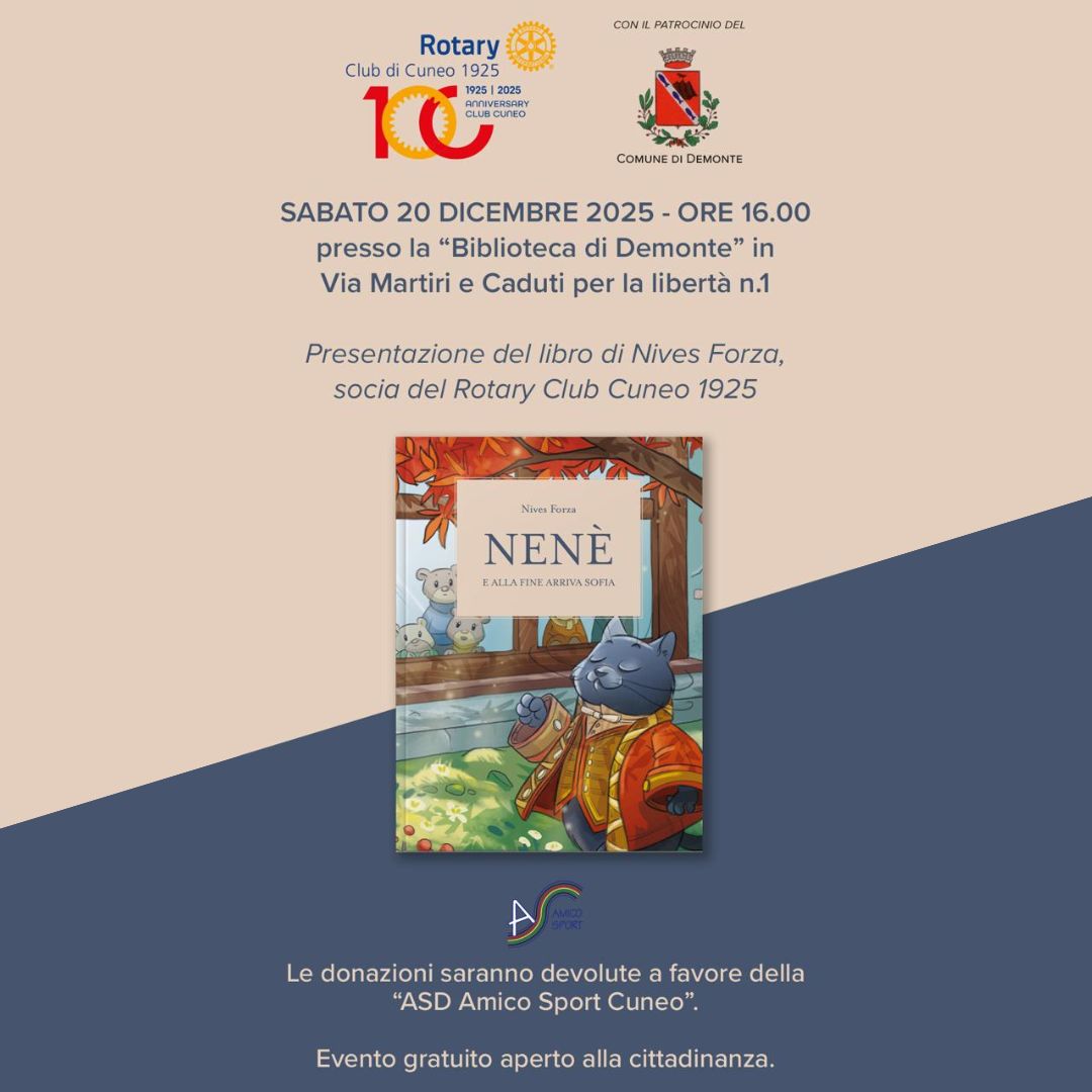 si terrà la presentazione del libro di Nives Forza, socia del Rotary Club Cuneo 1925, Nenè – e alla fine arriva Sofia.